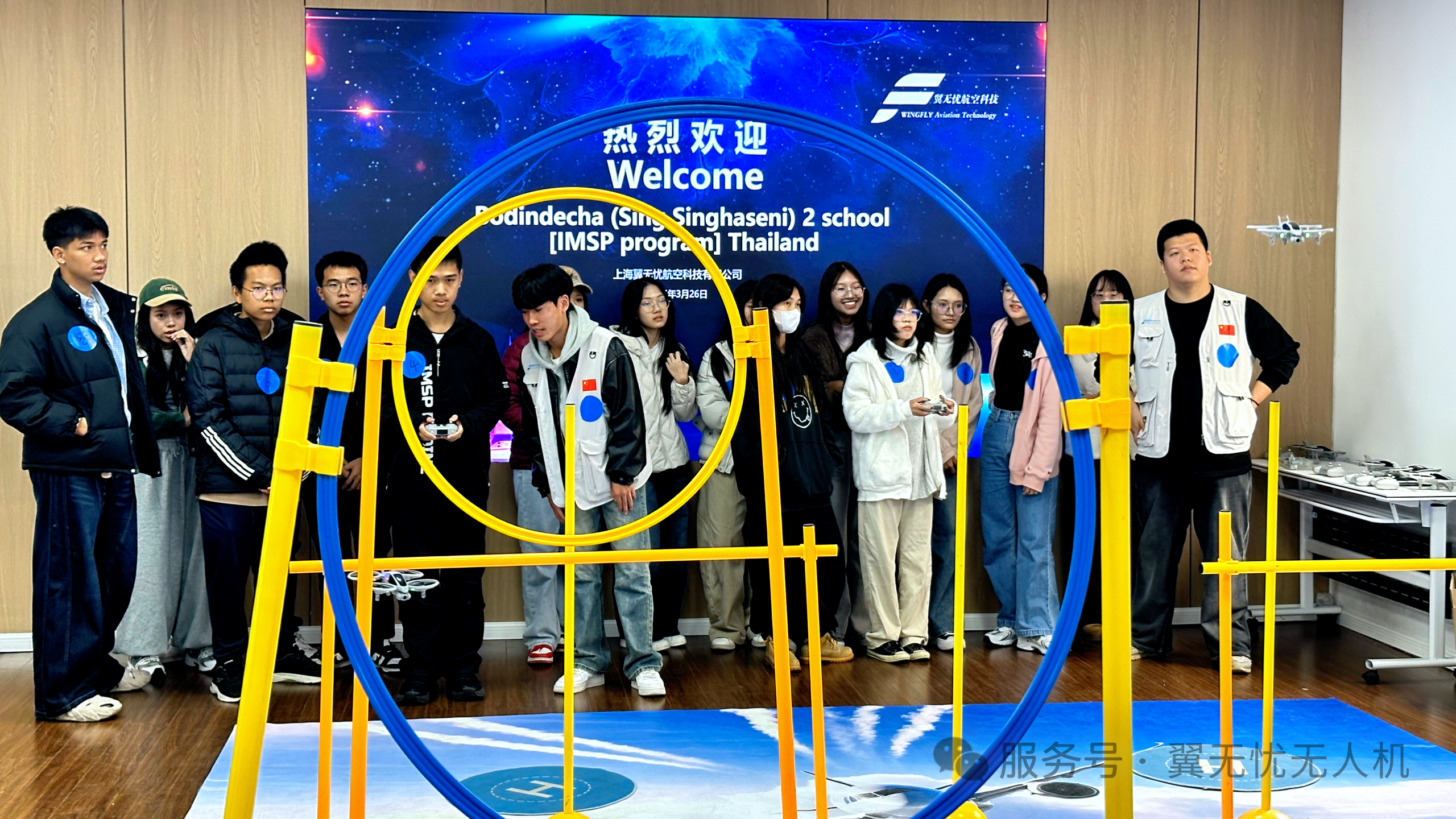 3月26日,翼无忧航空科技迎来了一批特别的客人——来自泰国Bodindecha(Sing Singhaseni)2 school [IMSP program] 的师生们。他们跨越山海,走进翼无忧的无人机世界,开启了一场别开生面的飞行体验营活动。这是一次科技与文化的交融,更是一场关于梦想与探索的生动实践。